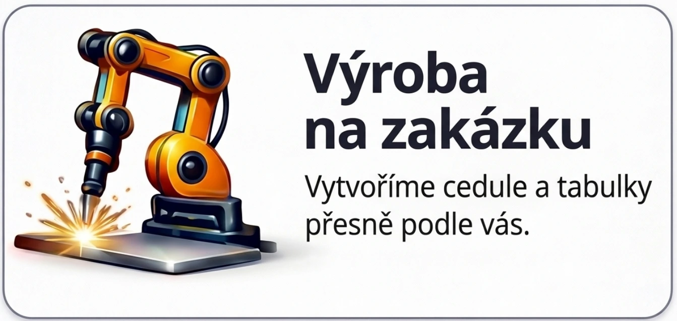 Gravírování vs. Potisk: Zatímco běžné cedule se časem oloupou nebo vyblednou, my sázíme na precizní hloubkové gravírování. Tato technologie zaručuje, že značení zůstane čitelné a reprezentativní po celá desetiletí i v agresivním průmyslovém prostředí.