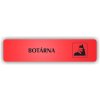 Tento Piktogram - BOTÁRNA slouží nejen jako piktogram, ale také jako cedule pro efektivní vizuální označení a navigaci. Vyrobený z bukové dřevo nebo v široké paletě barev plastů jako stříbrná broušená nerez, zlatá broušená, bronz broušená, černá, červená, modrá, zelená, žlutá, a bílá, je ideální pro různé použití. Jeho univerzální design a odolná konstrukce zajišťují, že bude sloužit jako spolehlivé a estetické řešení pro označení prostorů a směrování v kancelářích, školách, veřejných institucích a mnoha dalších prostředích.
