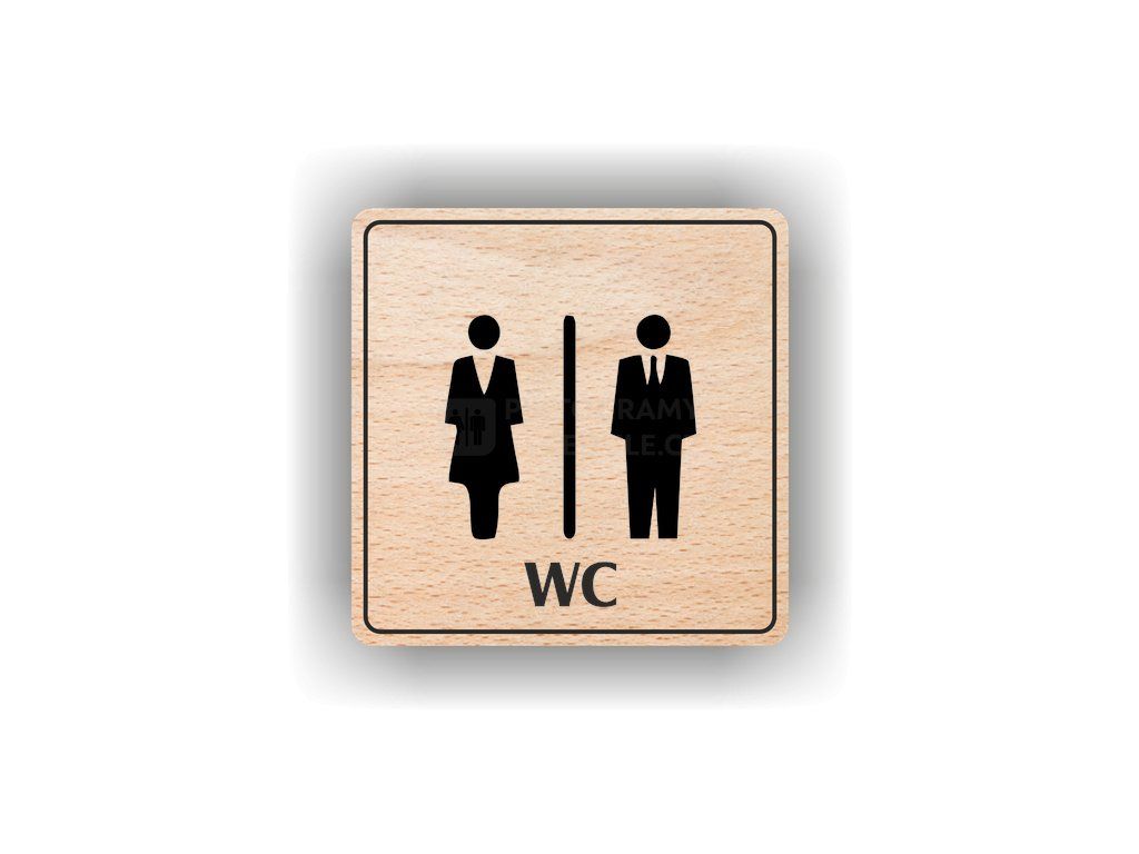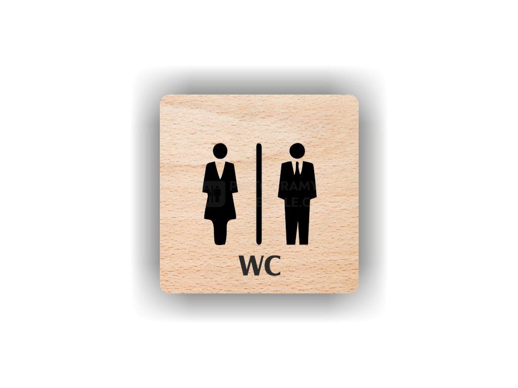 Kvalitní piktogram z plastu nebo bukového dřeva pro označení toalet a hygienických prostor.