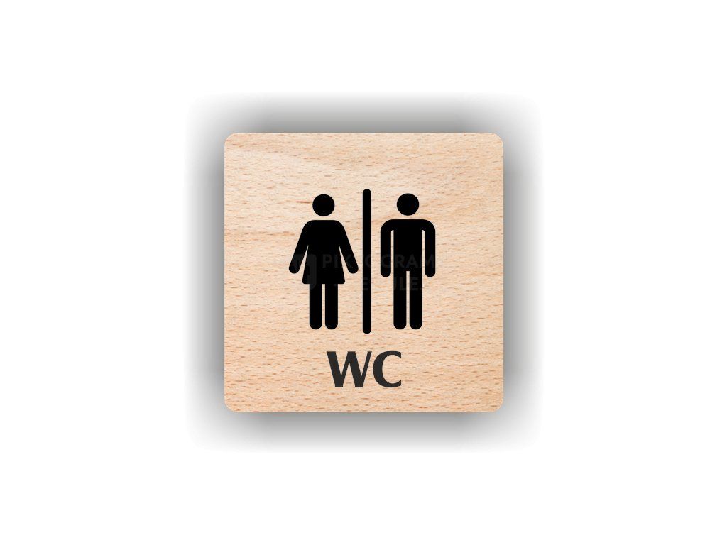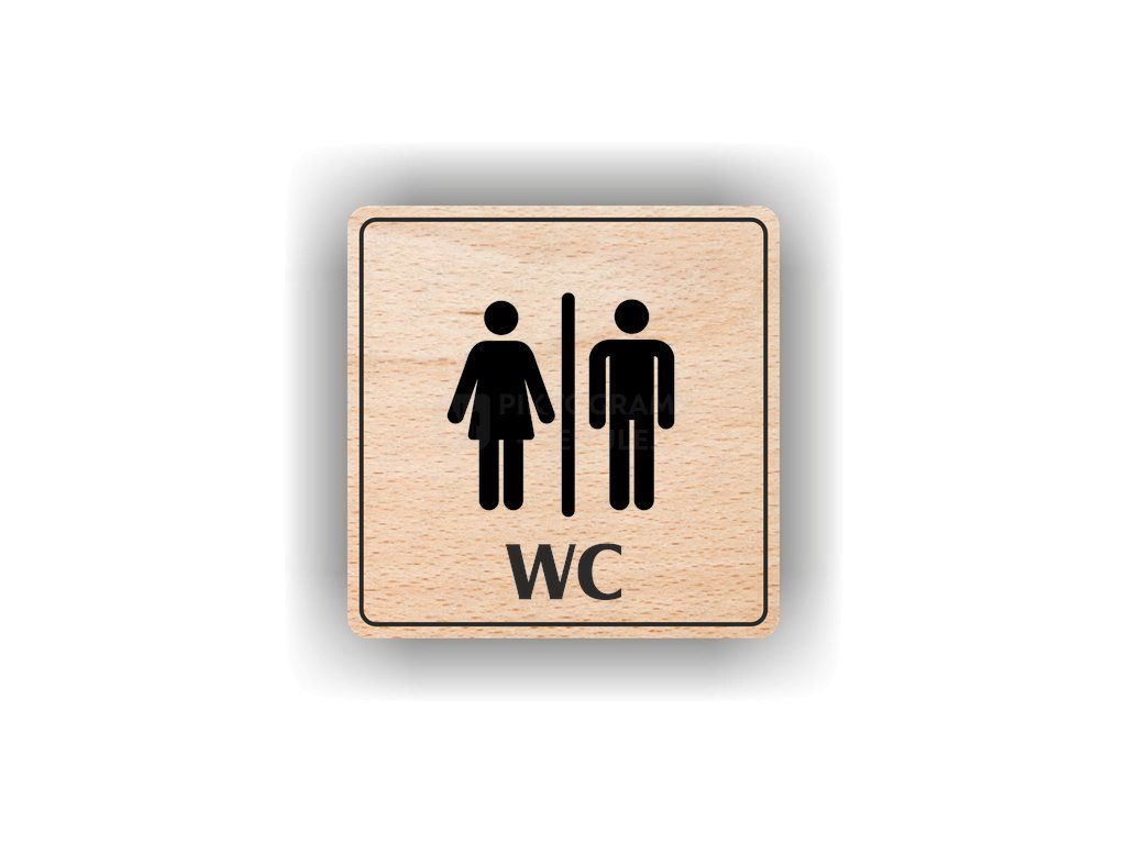 Kvalitní piktogram z plastu nebo bukového dřeva pro označení toalet a hygienických prostor.